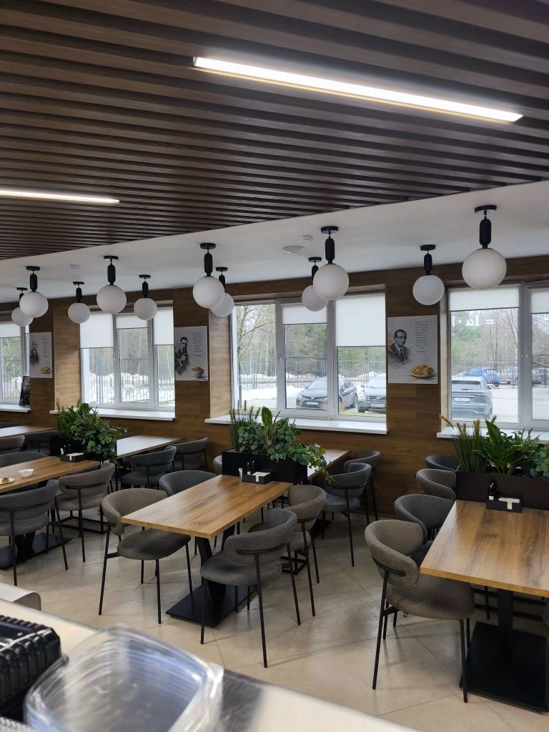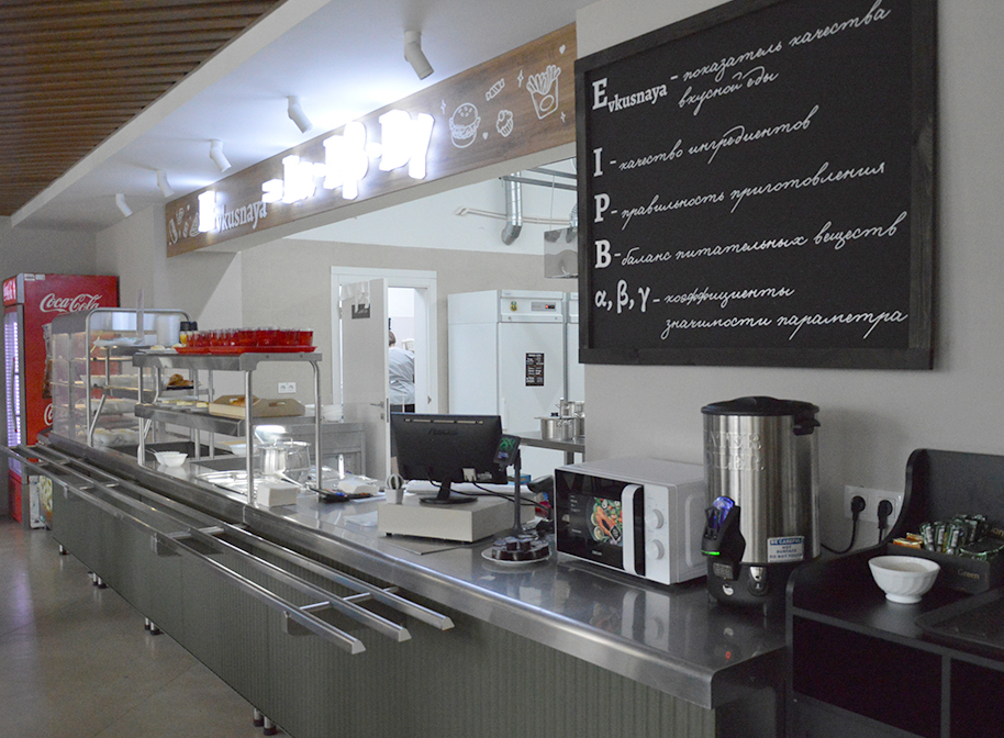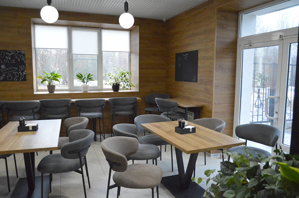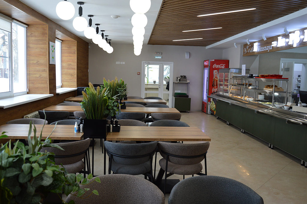 Закончен ремонт, обновлена мебель, столовая стала уютным кафе с продуманным интерьером, связывающим историю с сегодняшним днем. И не забывайте заглядывать в меню. Приятного аппетита!